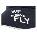 "we make it fly" embroidered text