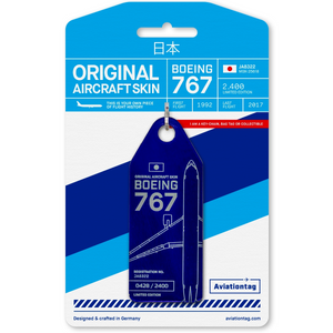 Aviationtag All Nippon Airways B767 Aircraft Skin Tag in blue colour with packaging - Aircraft Registration JA8322