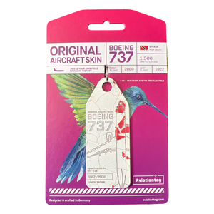 Original Aircraft Skin tag of Caribbean Airlines Boeing B737-800 in white was designed and crafted in Cologne, Germany.