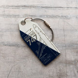 Each British Airways B747 aircraft blue and white tag is part of limited edition collection and is one of a kind with a unique serial and aircraft registration number, so the origin of the material can be traced all the way to when the plane was first sold.