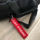 This great luggage tag features embroidered bold FLIGHT ATTENDANT and DO NO REMOVE FROM AIRCRAFT white lettering on the durable red colour cotton background. Widely used by airline pilots and cabin crew for easy bag identification on board. Make your luggage stand out from others. Don't lose your crew bag - Mark it appropriate!