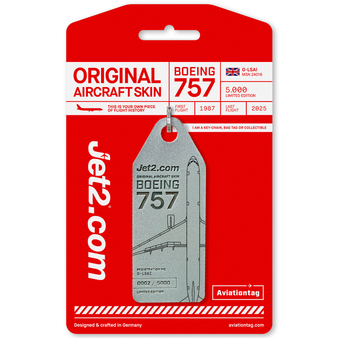 Jet2 Boeing 757 Aviationtag – Silver Aircraft Skin Tag – G-LSAI