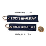 - Mini Remove Before Flight tag in navy and white