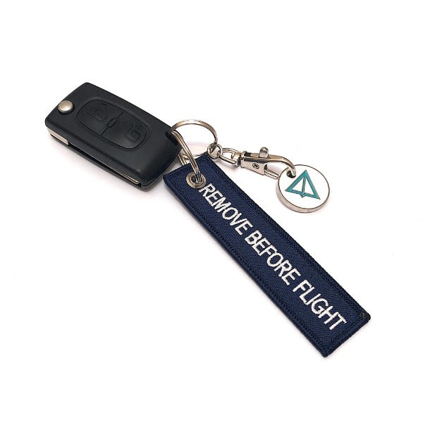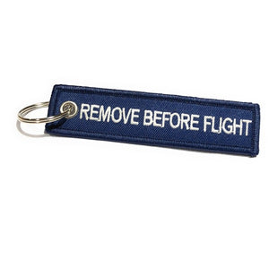 Mini Navy and White Remove Before Flight keychain is made from quality polyester for maximum performance. Quality materials used ensures they won't break or fade away quickly. This tag features embroidered white REMOVE BEFORE FLIGHT text on navy polyester twill. Mini Remove Before Flight tag is perfect for quick and easy way to identify your bag or keys. Use it as keychain or luggage tag.